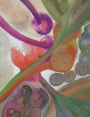 installation, a curiosity cabinet, accompanied by a few gouaches and oil